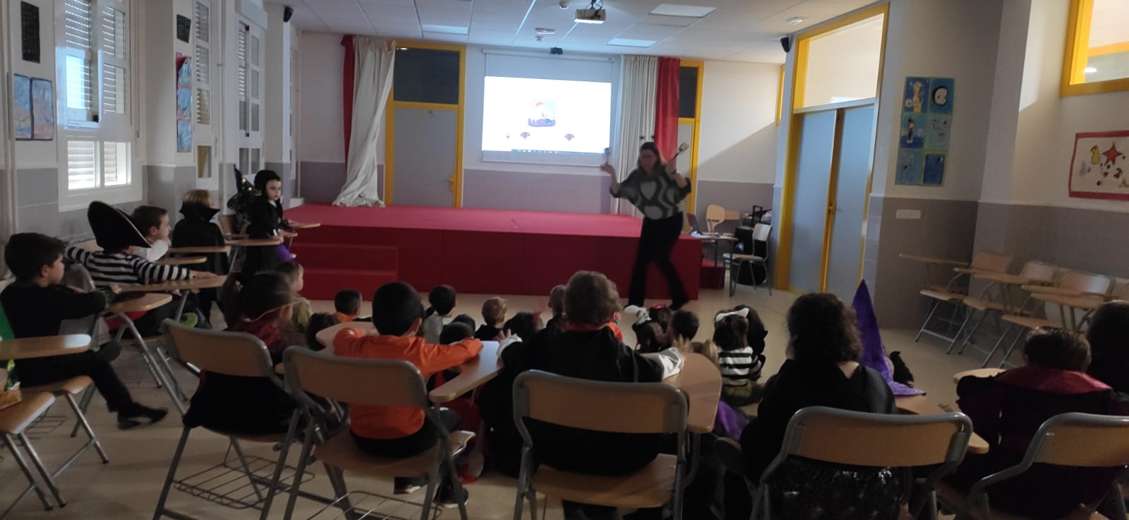 Gracias también a Nuria, responsable de la Biblioteca Pública Municipal de Arcas, que este año ha dejado su lado maléfico, para convertirse en una brujita cuentacuentos. Lo has hecho genial, gracias por ser tan generosa con nosotros.